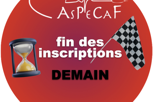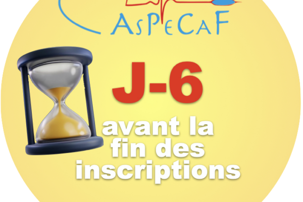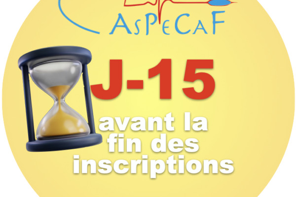 Il reste 15 jours avant la fin des inscriptions à la 30ème Journée Scientifique de l'AsPeCaF. La cloture des inscriptions aura lieu le dimanche 12 octobre 2025, soit 6 jours avant la date de notre journée.