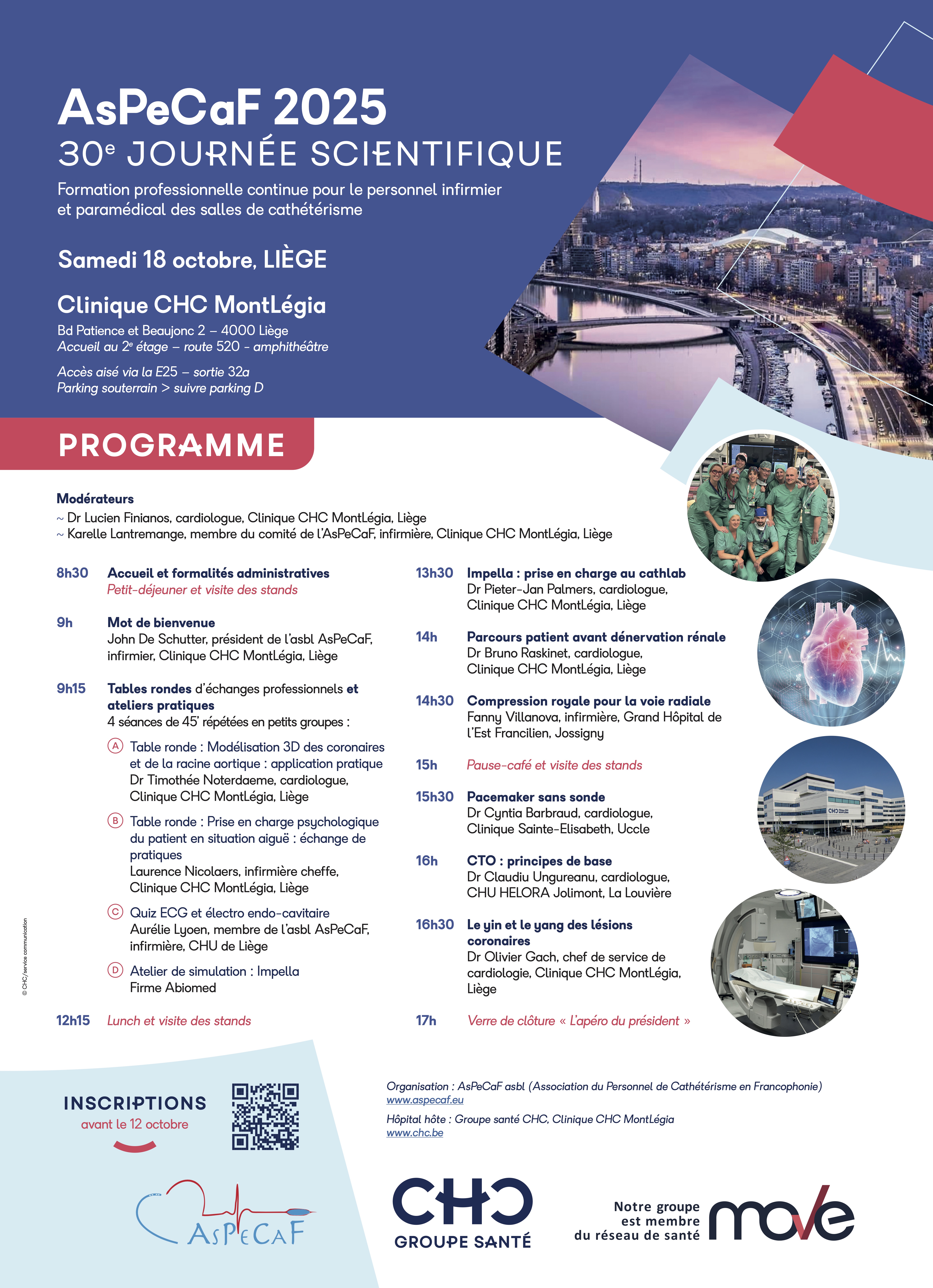 C’est l’équipe des salles de cathétérisme de la Clinique CHC MontLégia qui nous accueille cette année à Liège.